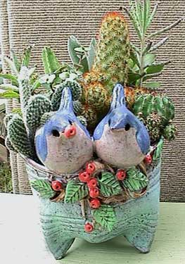 often feature bluebirds, raccoons and leaves and berries, yet serve as functional wares. His ceramics and paintings have won numerous merit